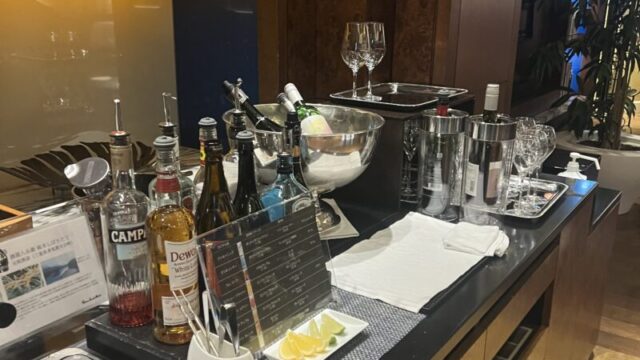 置いてあるドリンクや食事はザベイスイートと同じだと思います。