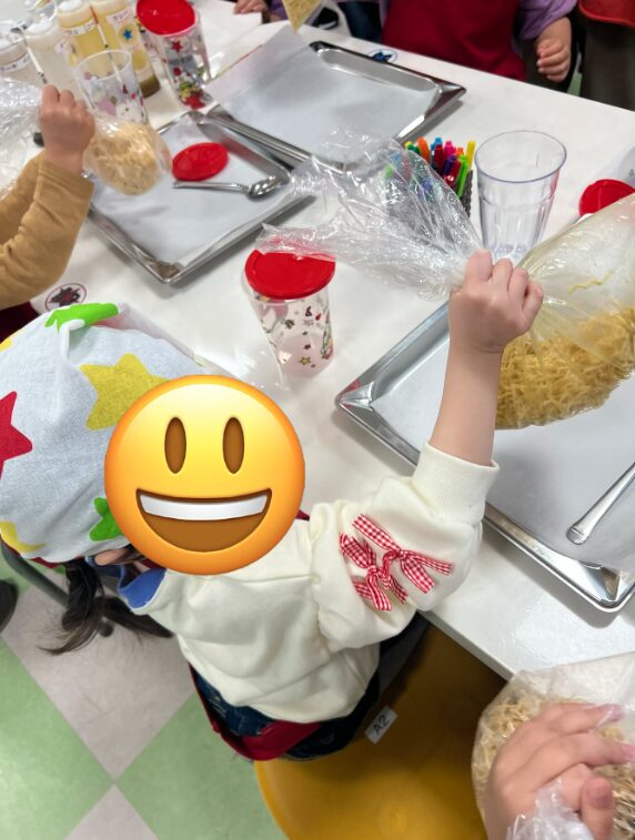 - フリフリベビースター: マラカス型容器にベビースターとフレーバーを入れてフリフリする体験。小さなお子様向けです(所要時間:約15分)。