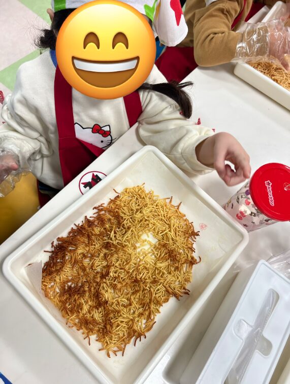 - チョコクランチ作り: ベビースターとチョコを組み合わせた新感覚スイーツを作ります。
