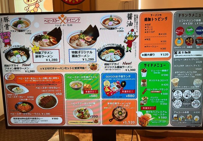 - 超超ドデカイオリジナル醤油ラーメン:めっちゃでかい!家族4人掛かりでなんとか食べ切りました。味も美味しかったです。